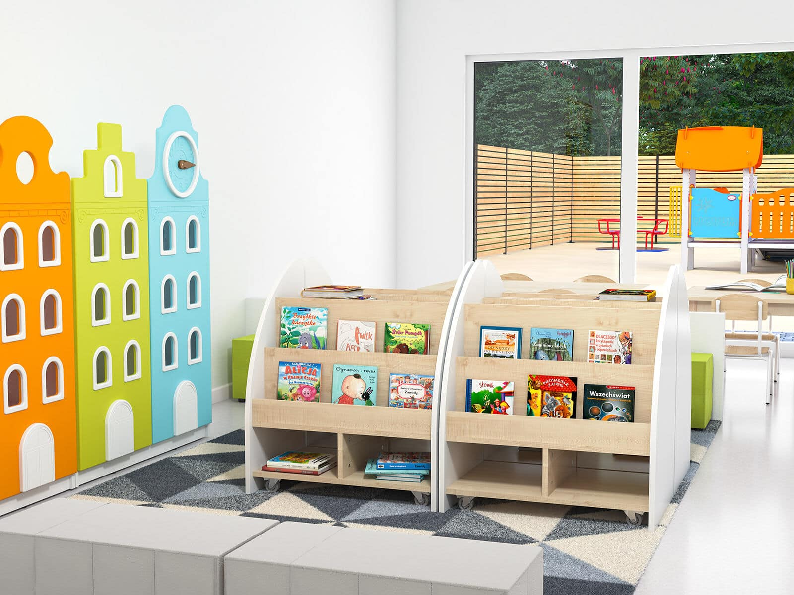 Denne Gretel Bogreol er ideel til daginstitutioner, børnehaver og skoler, der har brug for robust og praktisk opbevaring.