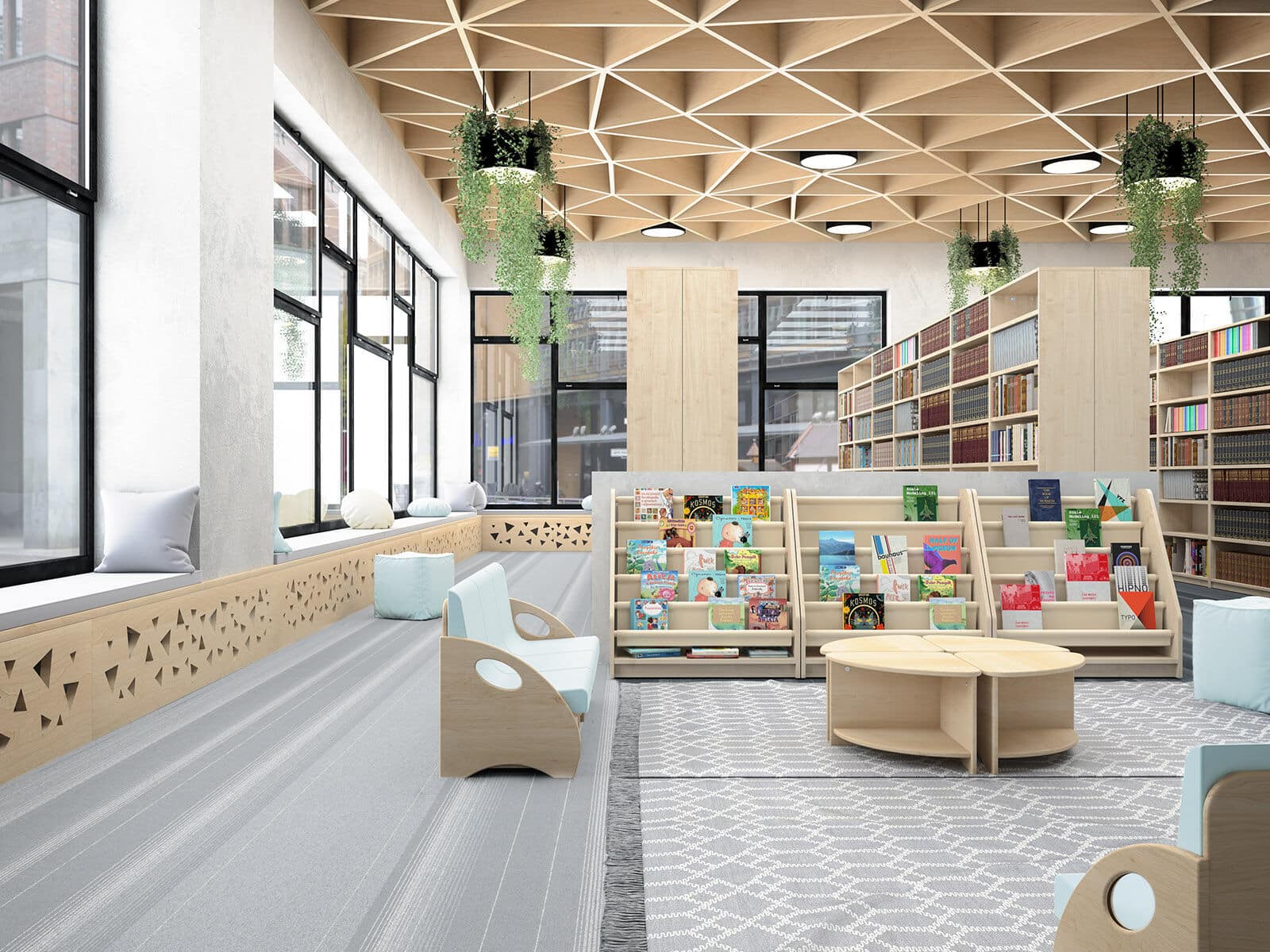 Reolen kombinerer funktionalitet og fleksibilitet, så børn kan opbevare bøger, legetøj og materialer på en overskuelig og tilgængelig måde.