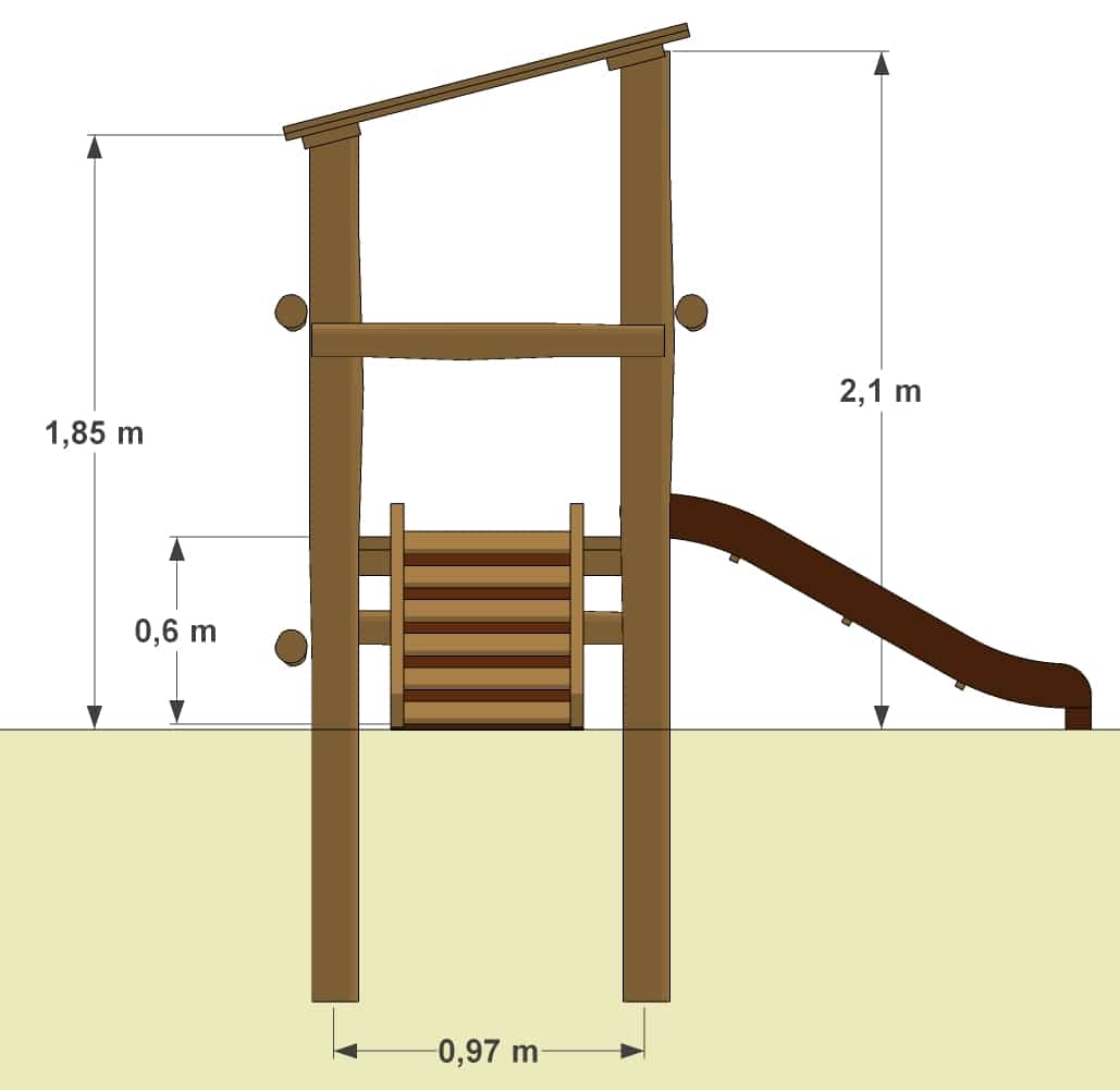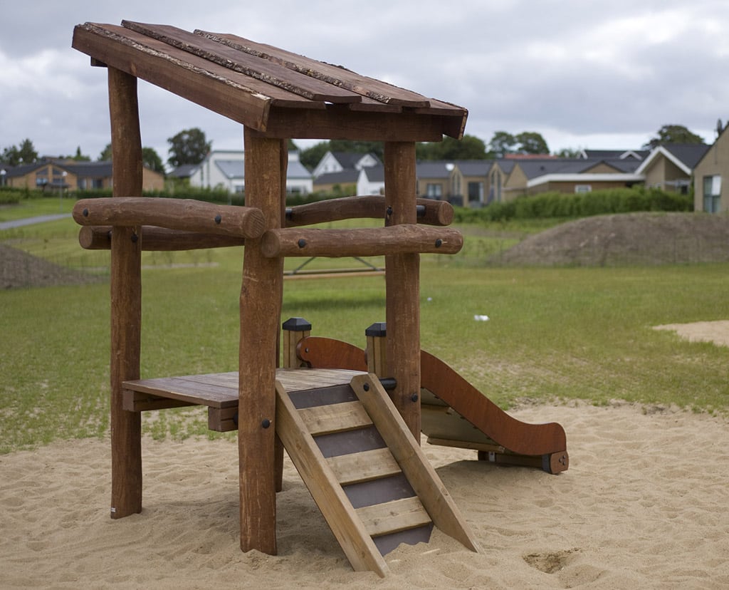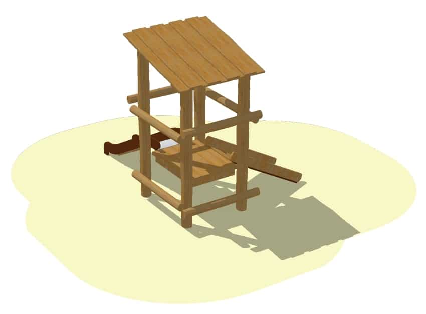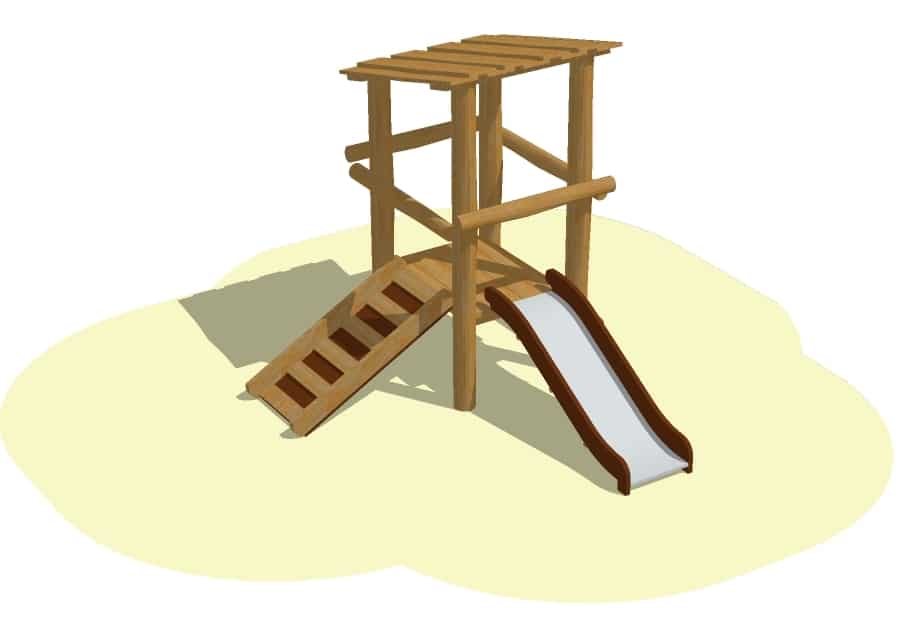 Selv om institutionen måske ikke har så meget plads, skal der altid være plads til at lege og røre sig. Dette lille tårn har både løberampe og rutsjebane og et lille tag, der beskytter, når solen brænder og regnen drypper.