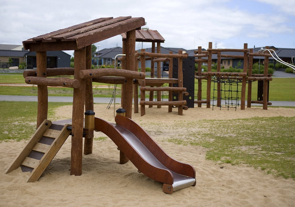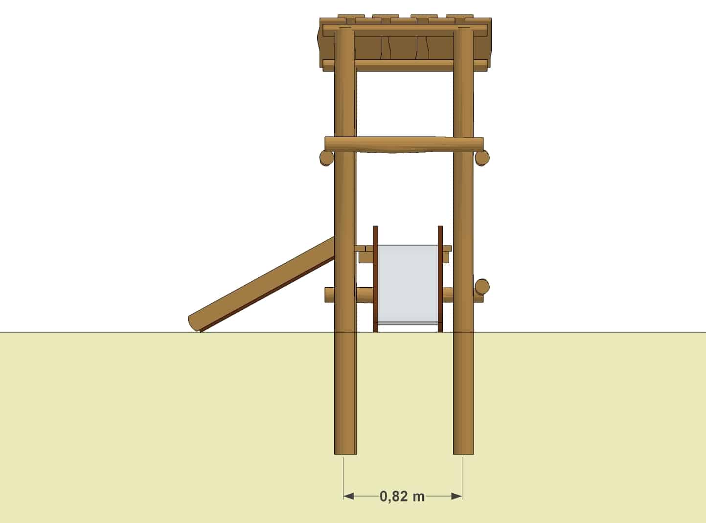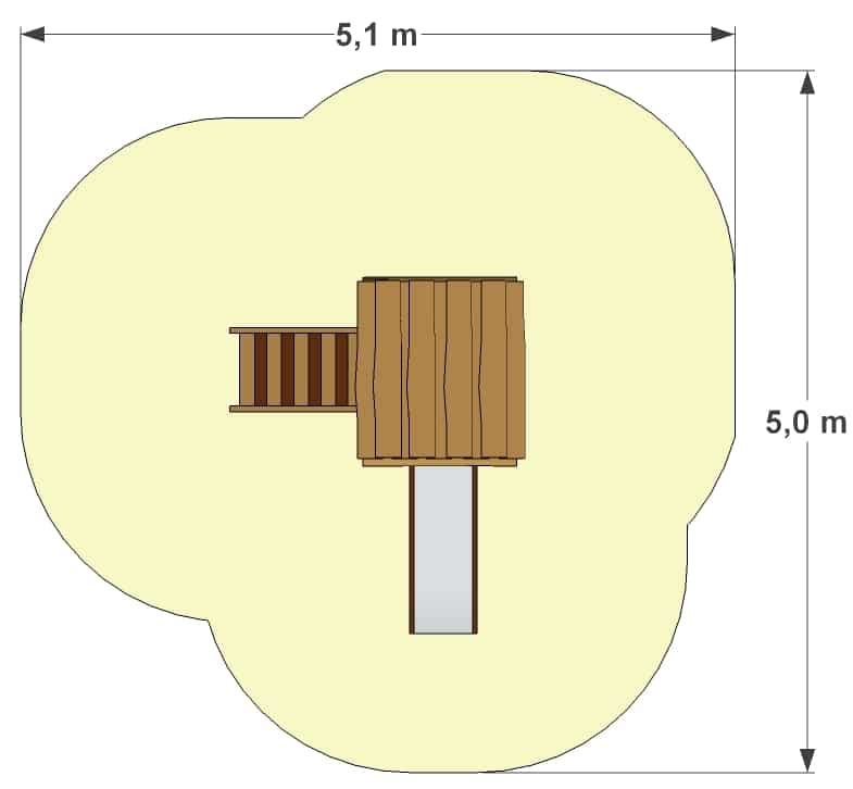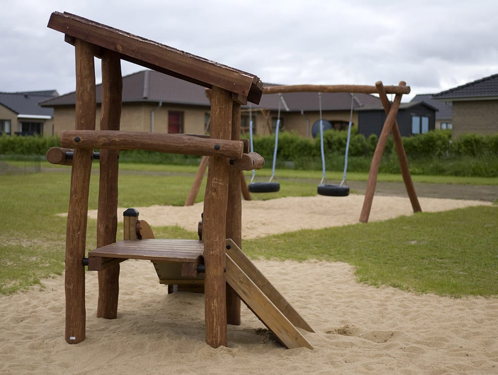 Selv om institutionen måske ikke har så meget plads, skal der altid være plads til at lege og røre sig. Dette lille tårn har både løberampe og rutsjebane og et lille tag, der beskytter, når solen brænder og regnen drypper.