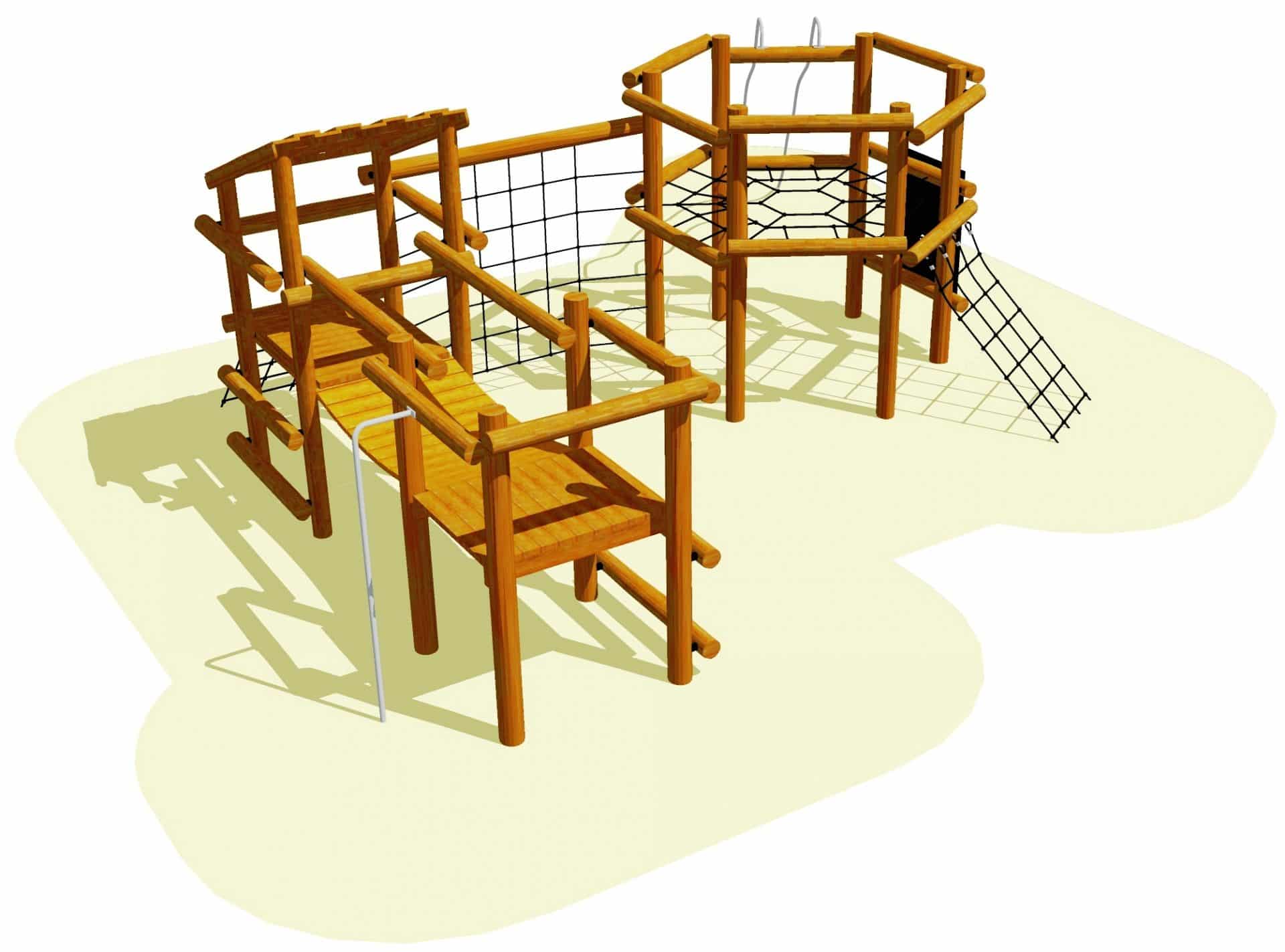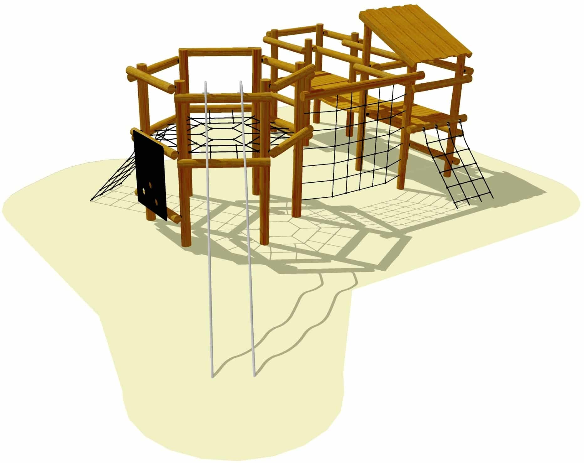 Vores jungles vildeste gorilla. Med hele tre tårne og alle de udfordringer, I drømmer om: Rebstige, klatrenet, bandmandsstang, rutsjestænger, gyngende net-gulv, hængebro og plads til, at mange børn kan lege sammen og udvikle deres sociale evner lige så meget som fysikken.