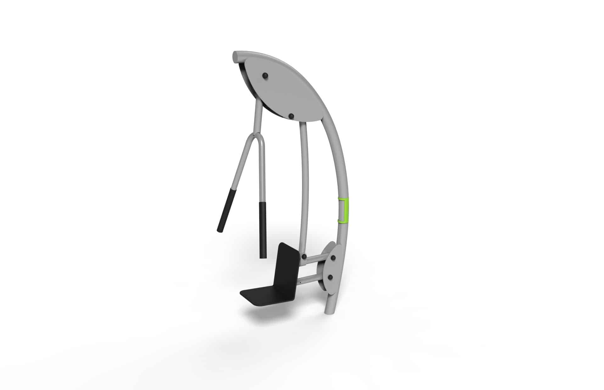 Denne Junior Chest er en skulderpres station, som bruger barnets egen vægt som modstand. Den helt rette modstand, som gør det sikkert og effektivt at træne skuldre, triceps og bryst.