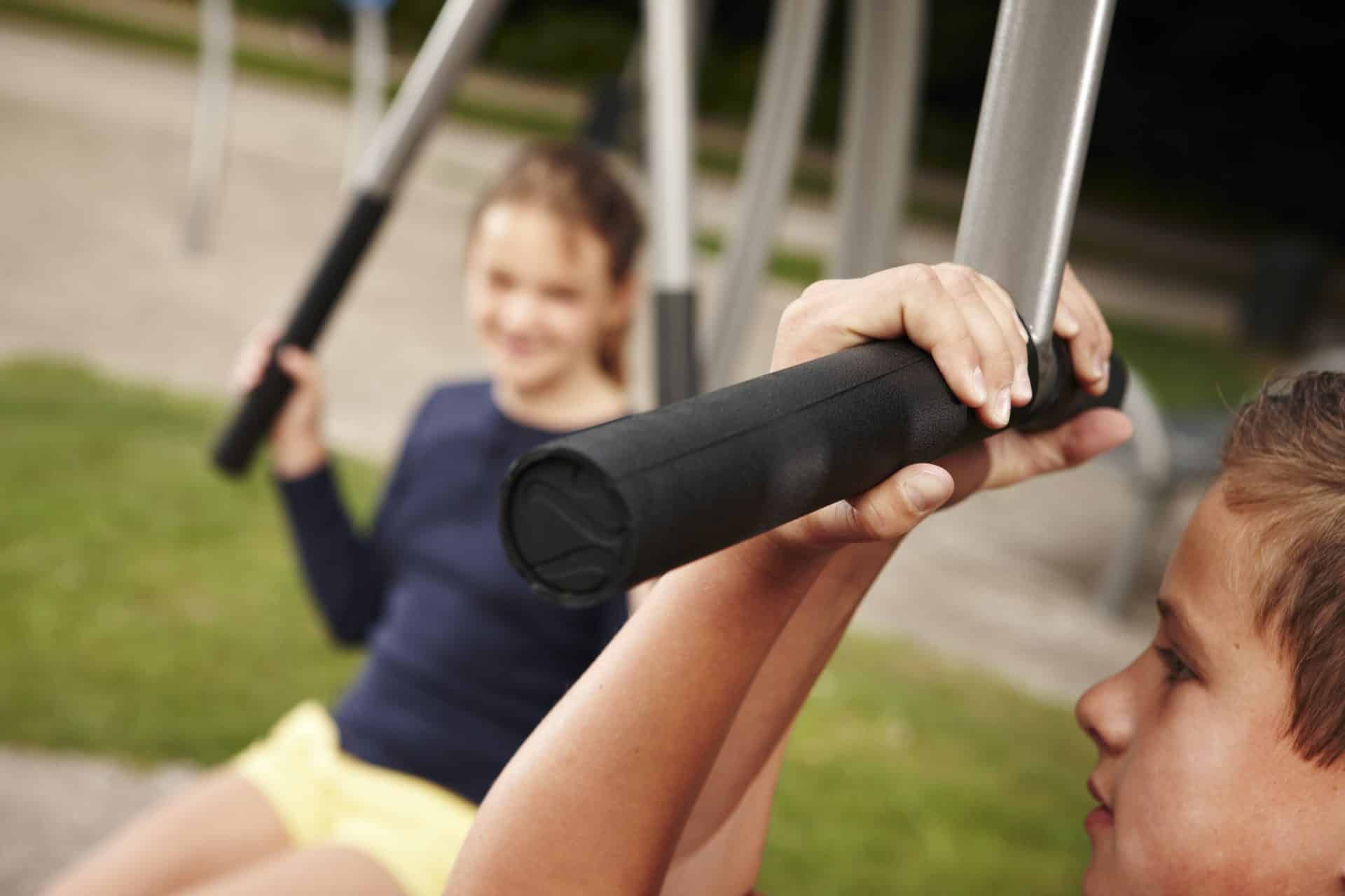 Junior Back er en pull-down station, som styrker ryggen, skuldrene og biceps – igen – ved at bruge barnets egen vægt som modstand.