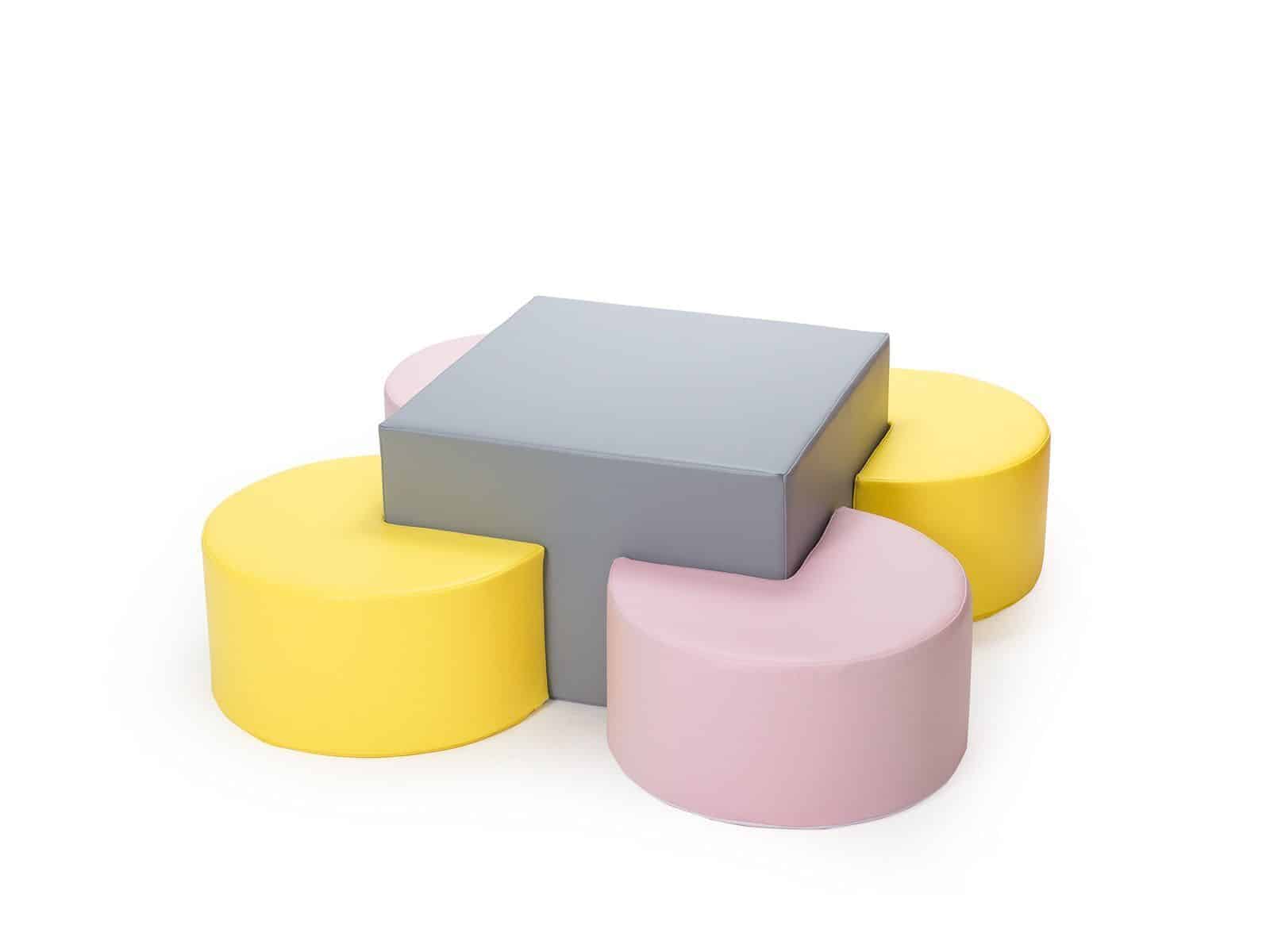 Skab et hyggeligt og funktionelt legeområde med Skumbord med sæder i pastelfarver, designet specielt til vuggestuer, børnehaver og daginstitutioner. Det bløde bord- og sædesæt giver børnene et trygt sted til leg, læring og samvær – samtidig med at det tilfører rummet en rolig og harmonisk atmosfære med sine fine pastelfarver.
