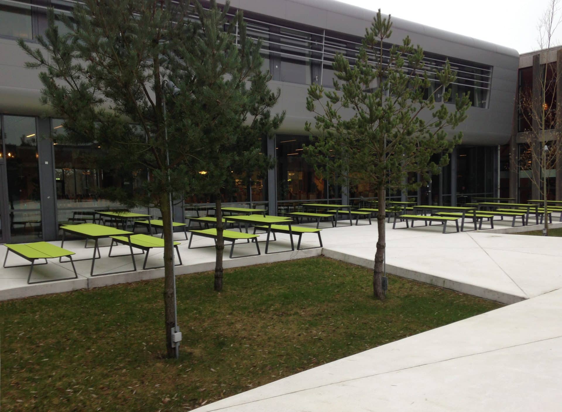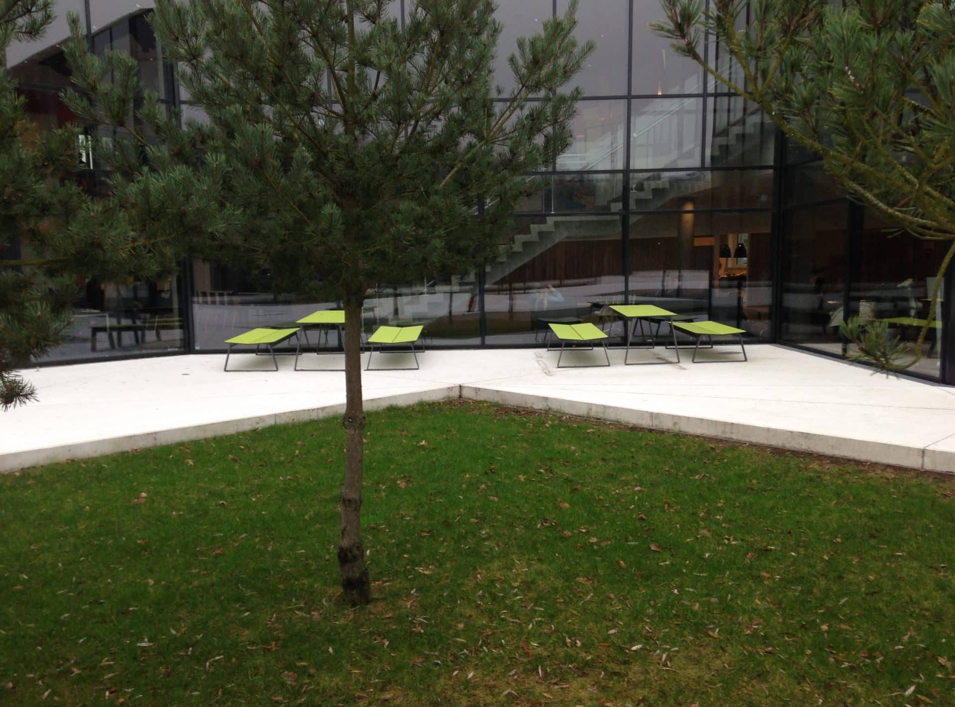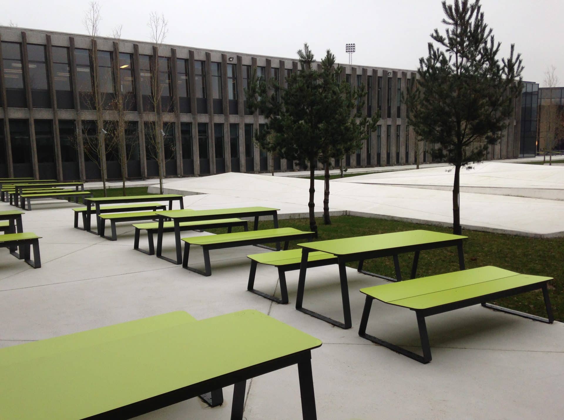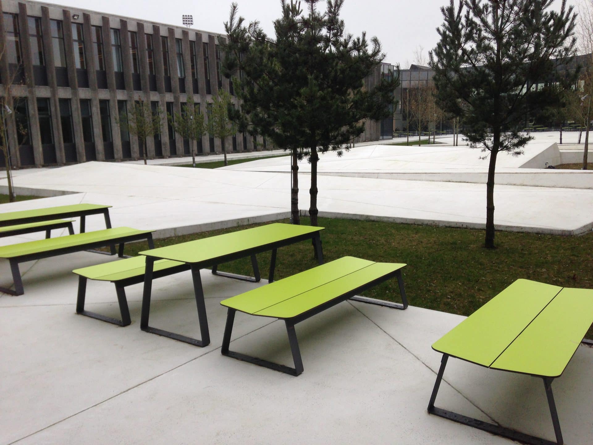Samme dogme hviler over materialevalgene, hvor det særdeles vejrresistente og UV-stabile højtrykslaminat møder et stel af varmgalvaniseret stål med pulverlakeret overflade. Moderne teknologi og materialer muliggør et så robust element, præsenteret så enkelt, så legende let.
