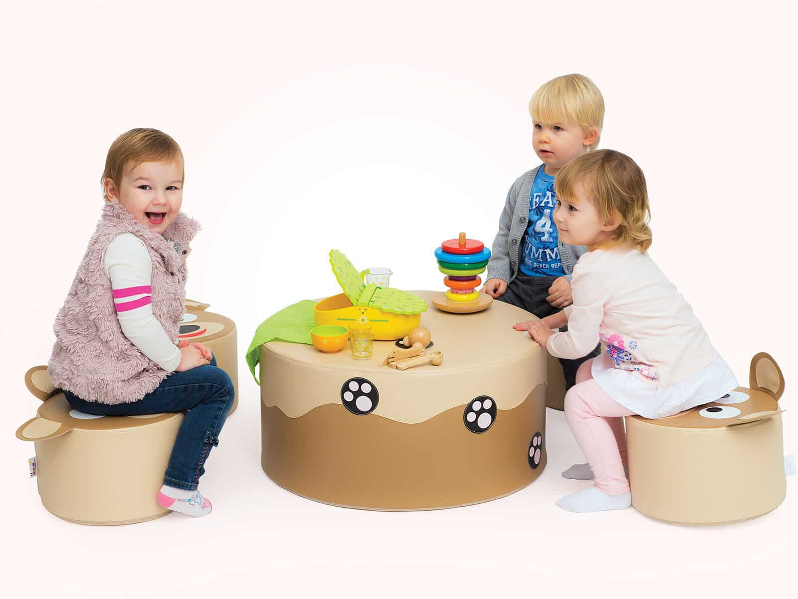 Skummøbler med blødt skum med høj tæthed gør legen sjovere. Nem at rengøre. Aftageligt betræk. Skjult lynlås garanterer sikker leg, uden risiko for at blive ramt af metaldelen. Forstærkede syninger gør den ekstra slidstærk og eliminerer krølningseffekten af materialet ved gentagende tryk.