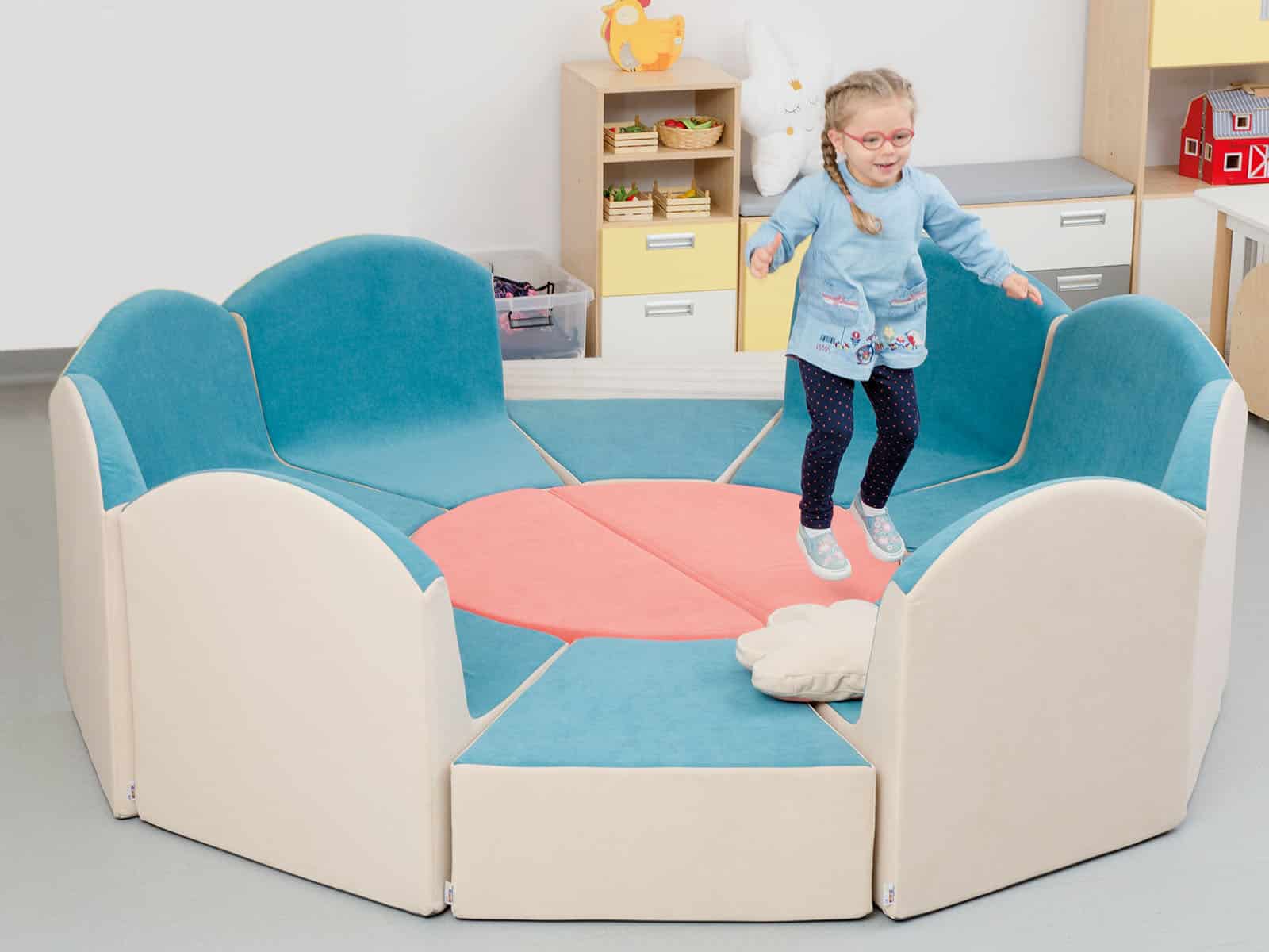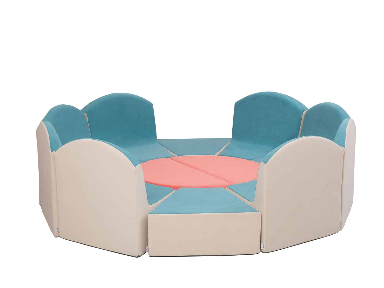 Tulip sæt er designet til legestuer, entre områder, venteværelser og personalerum. Store skumelementer er bløde og behagelige. Sættet består af 12 dele: 8 lænestole, 2 pufs og 2 store halvcirkler. Enkelte elementer kan også købes separat.